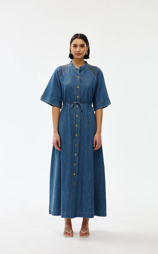 Staple the Label Amelia Chambray Midi Dress in Light Wash