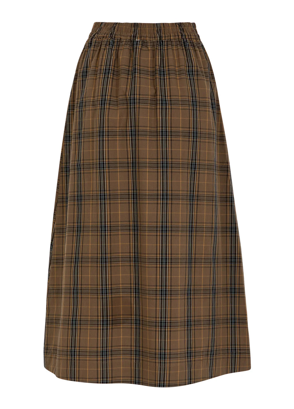 Experience the perfect blend of comfort and style with the CC Heart Alia Long Skirt. Featuring a flexible elastic waistband that adapts to your shape and elegant cutaway pockets for added functionality, this midi-length marvel is crafted from 100% cotton, ensuring a soft and breathable feel against your skin. The gorgeous winter brown check pattern adds a touch of sophistication, while the relaxed fit through the hips allows for effortless movement. A versatile skirt that effortlessly elevates any outfit!