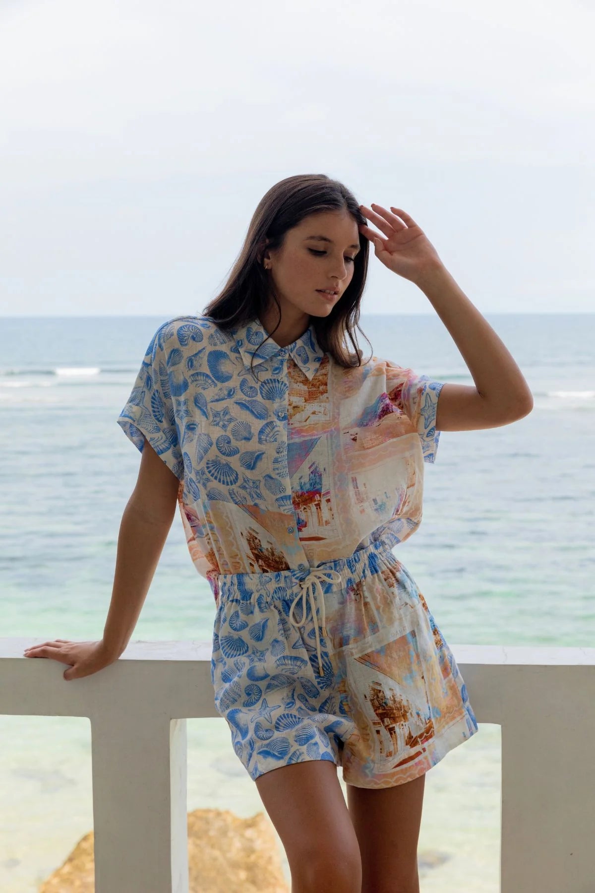 Pair perfectly with the Shelia Shirt, the Dana Short features a comfortable elastic waistband and adjustable drawstring for an easy, relaxed fit. Covered with a shell print, it brings a playful touch to any summer look.