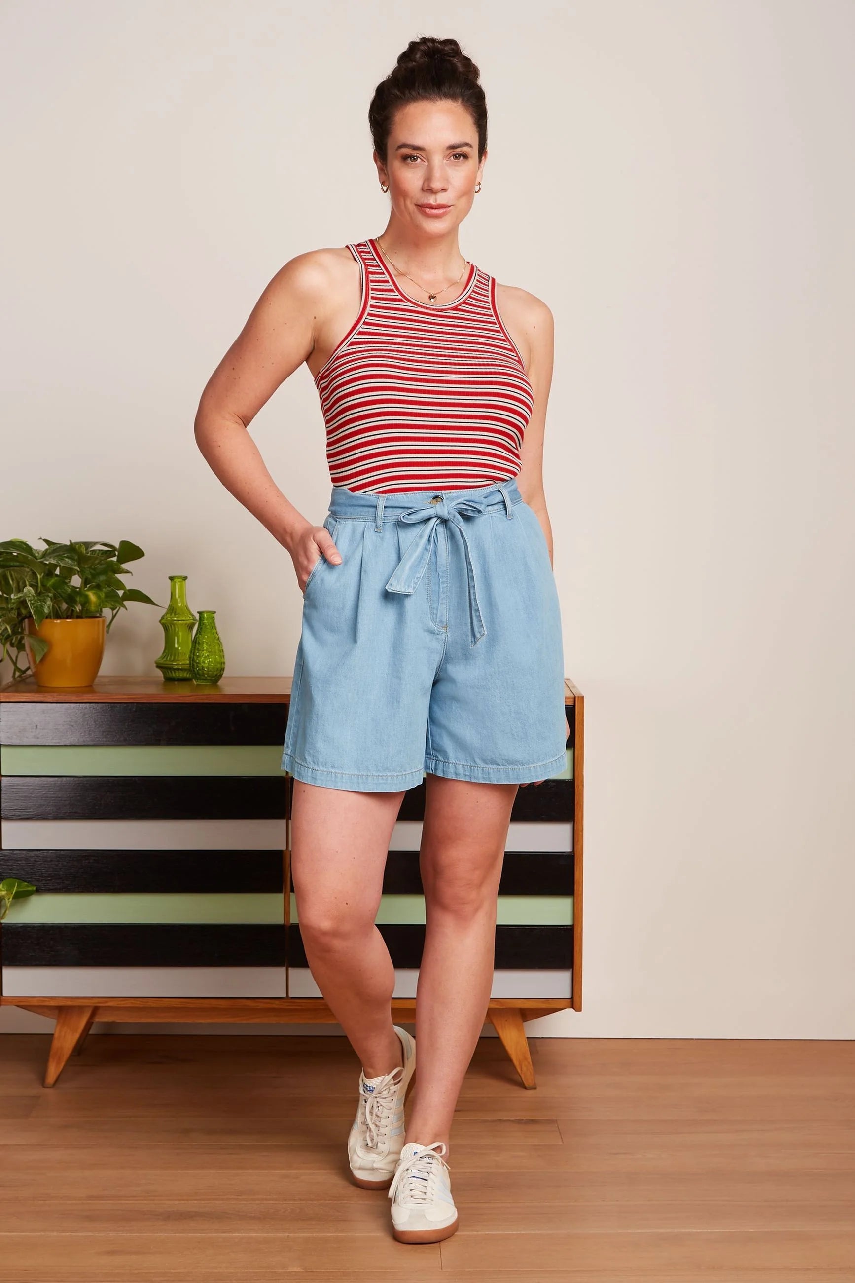 Made from non-stretch, GOTS certified organic cotton, these wide denim shorts are perfect for any occasion. The mid waist and tie belt add a touch of style, while the button closure ensures a secure fit. Made with woven twill, they're both durable and comfortable.