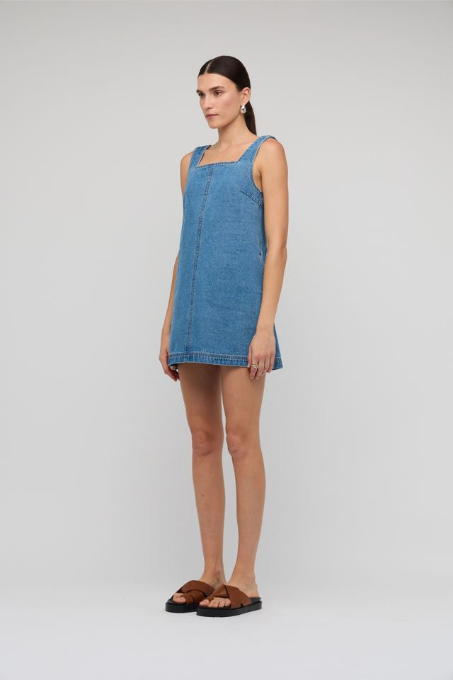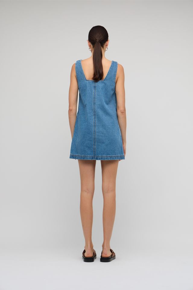 Staple the Label Cassia Denim Mini Dress Mid Blue